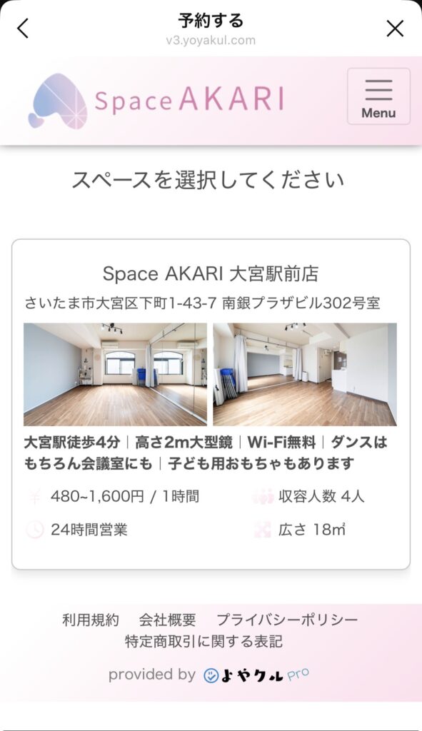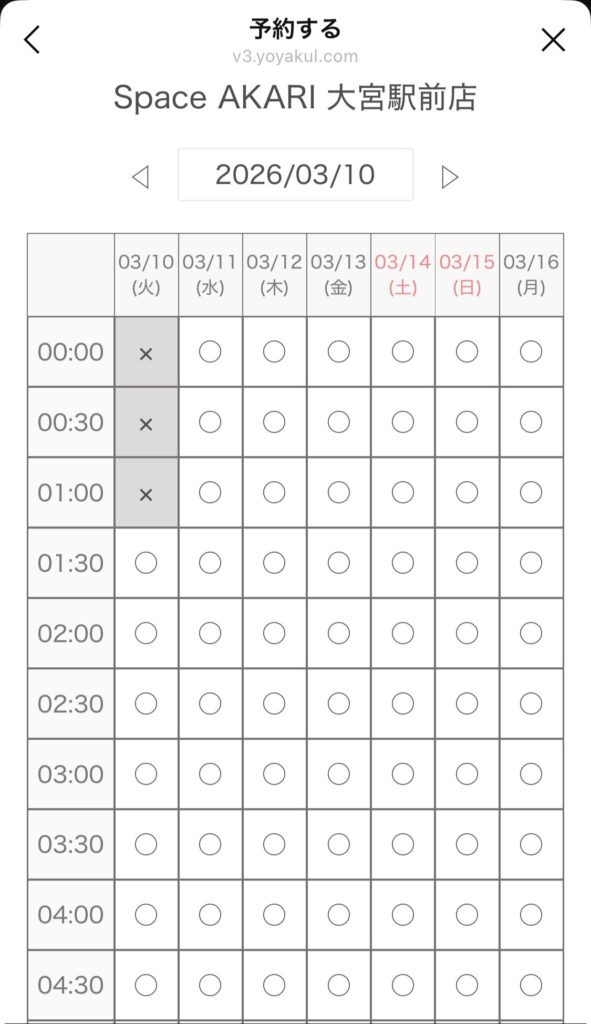 ②予約するスタジオを選び、希望日時に空きがあればその日時を選びます。