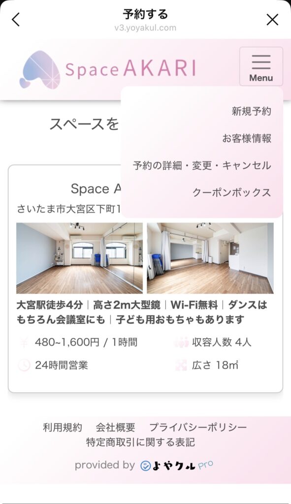 ④予約が完了すると、予約内容・ご利用案内・アクセス・鍵の開け方などの詳細が書かれてるメッセージが届くので、それを確認します。