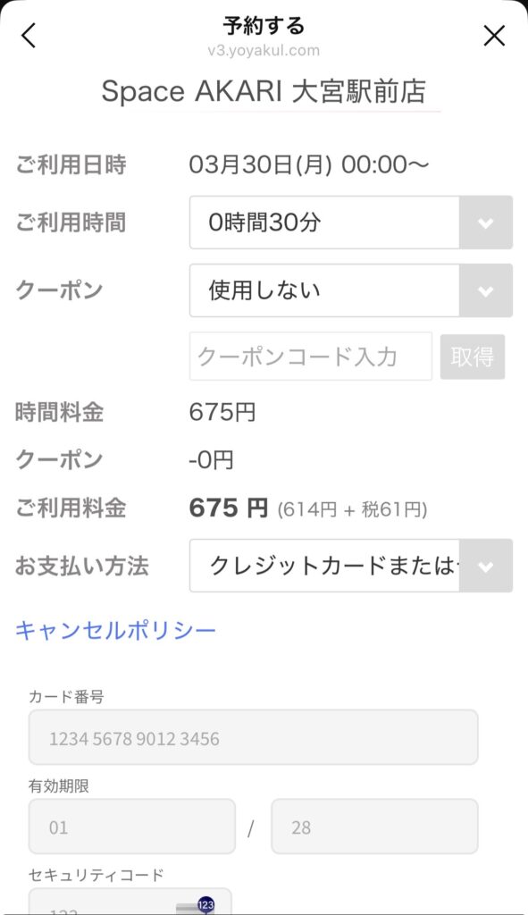 ③お名前・連絡先・クレジット情報を入力し、予約します。