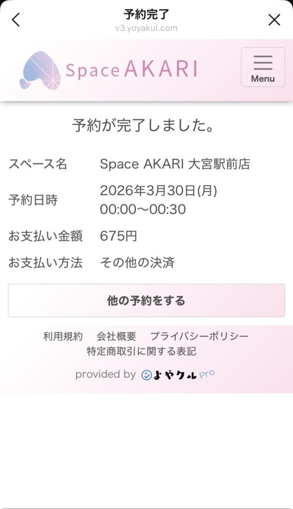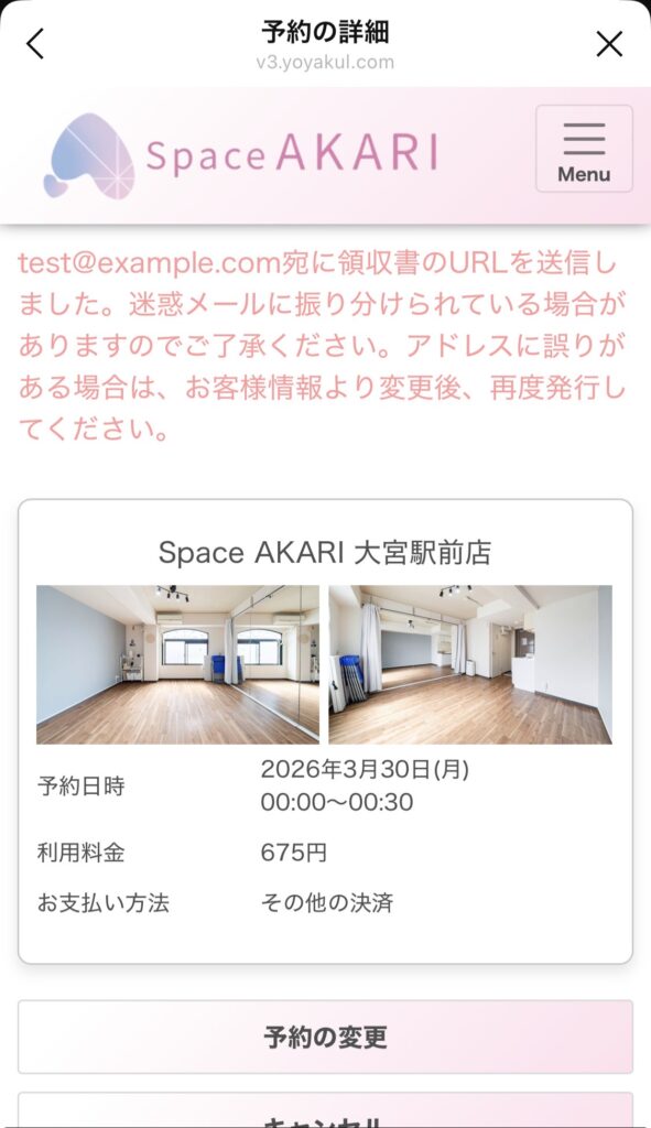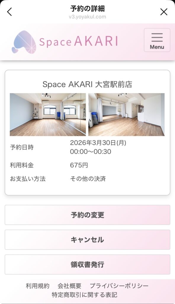 予約完了後、領収書を発行する事ができます。