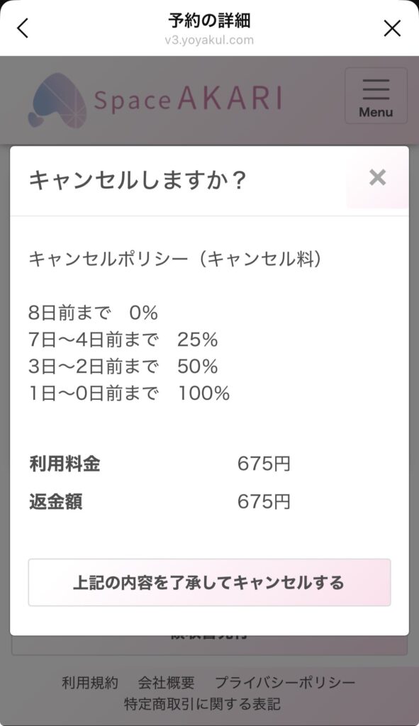 キャンセルポリシーに基づき、予約日の7日前からキャンセル料・変更料が発生しますので、予めご了承ください。